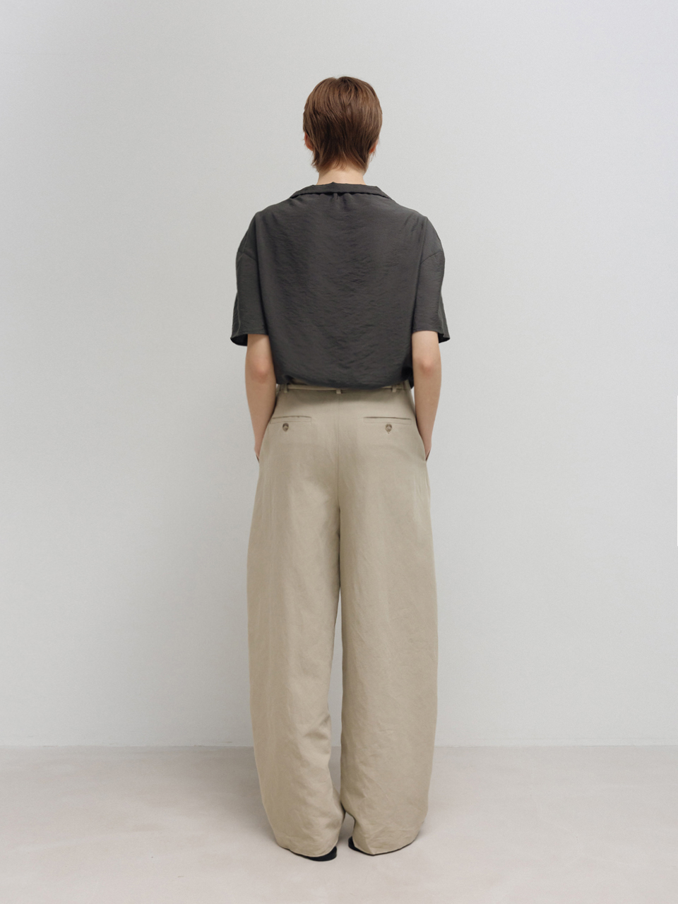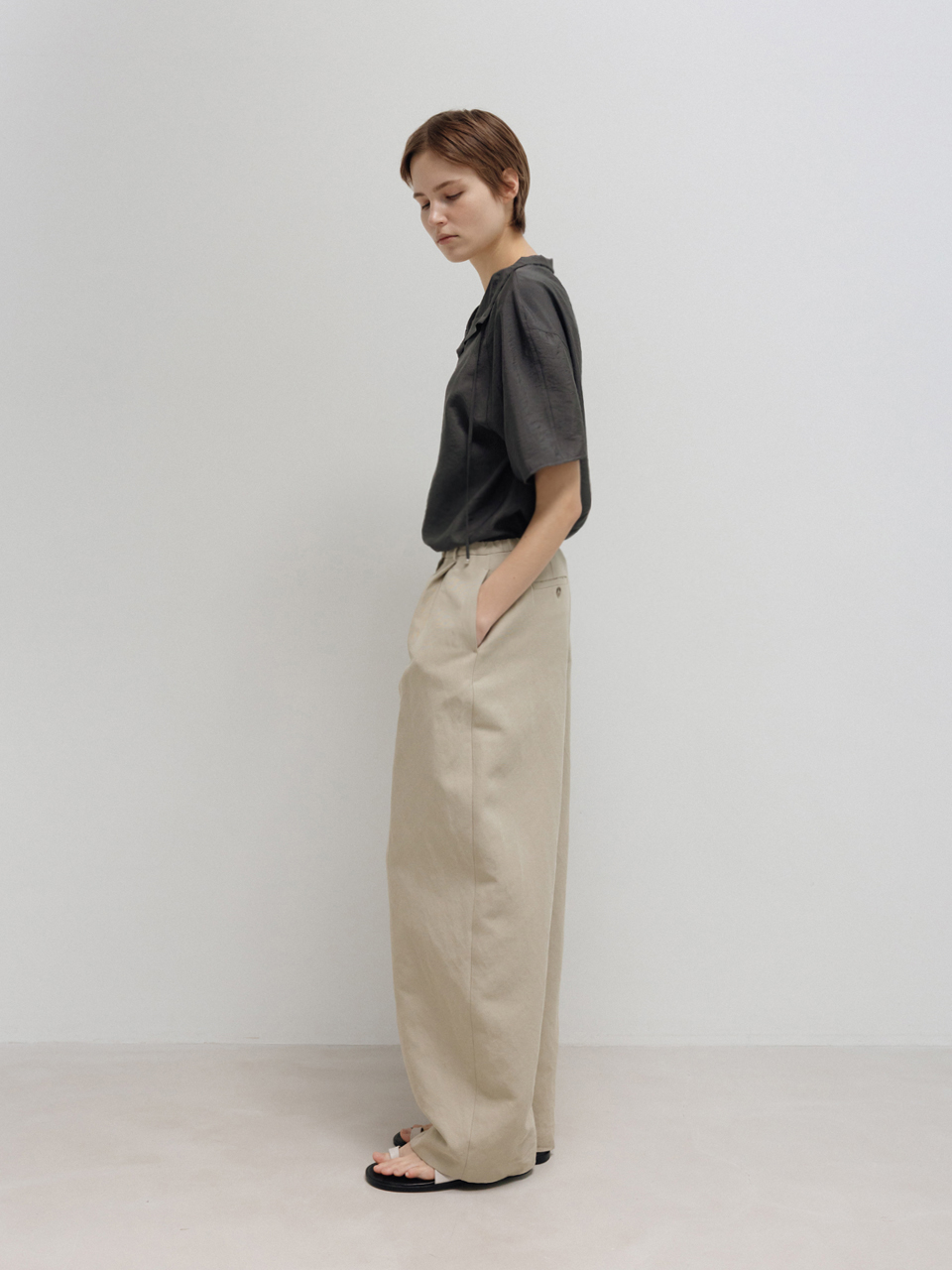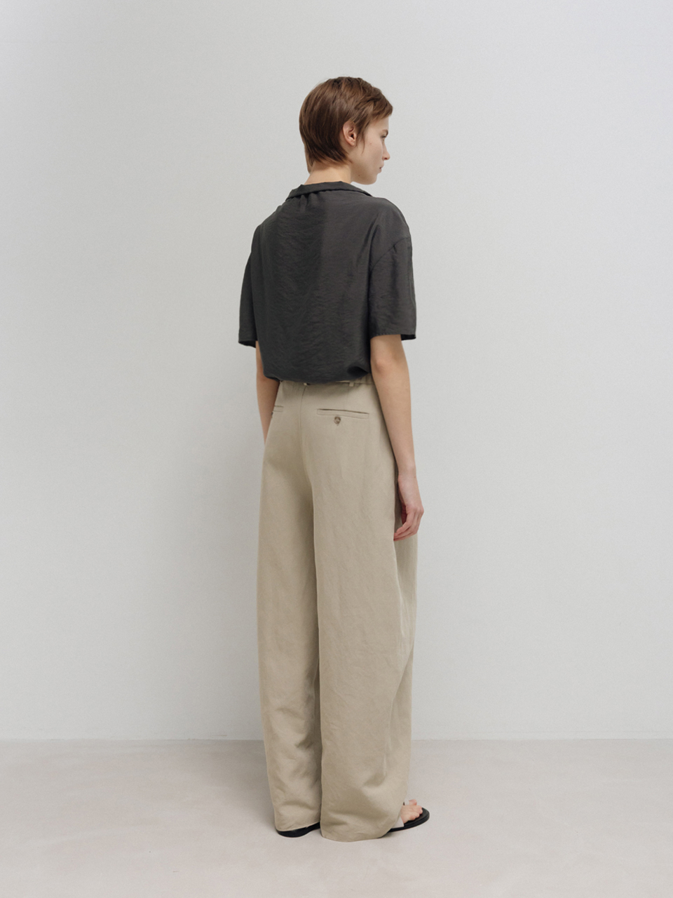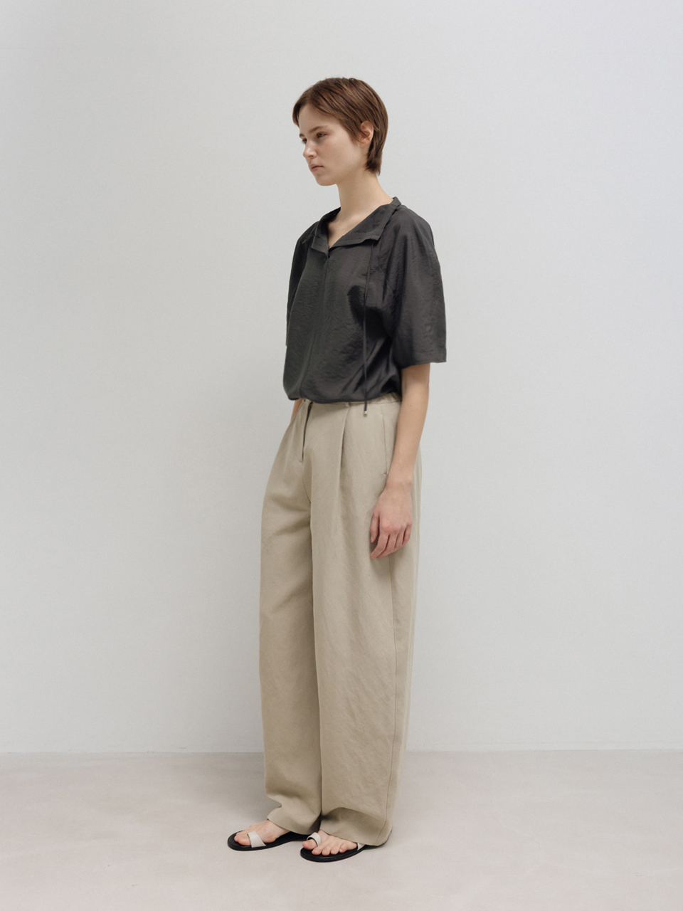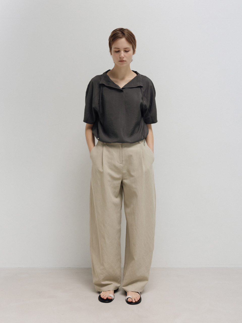 -자연스러운 드레이프 디테일이 돋보이는 카울 넥 하프 블라우스