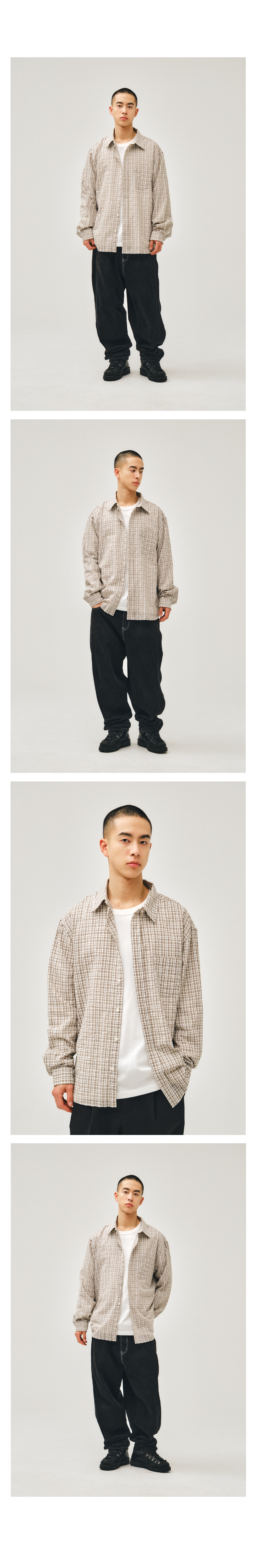 마일드 브러쉬 체크 셔츠 베이지