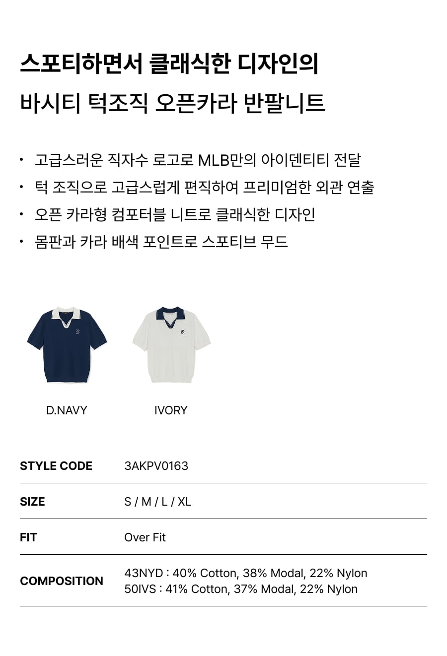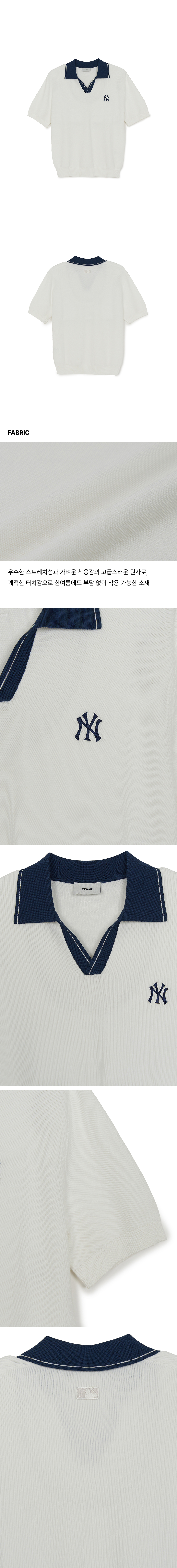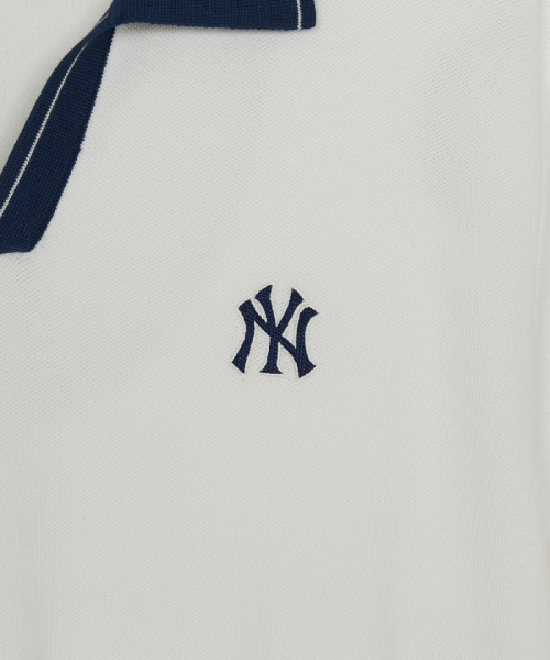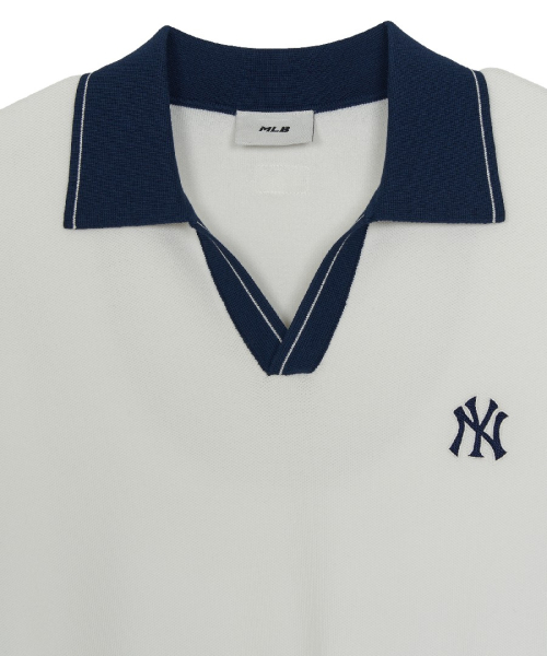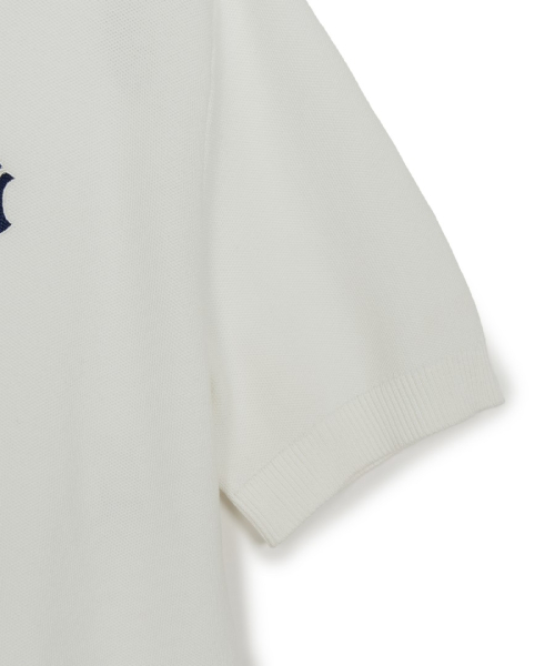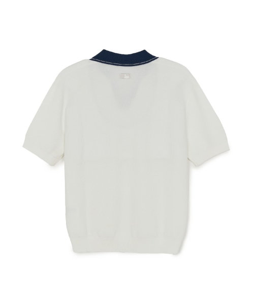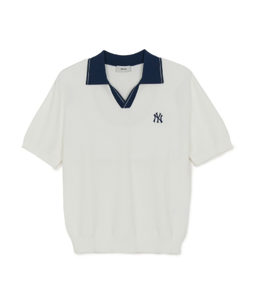 바시티 턱조직 오픈카라 반팔니트 NY (Ivory)