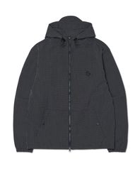 HOODED CHECK WIND JACKET - BLACK