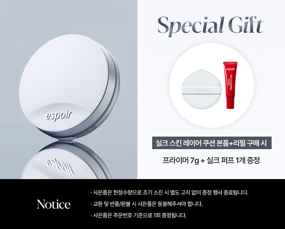 실크 스킨 레이어 쿠션(본품+리필)(+증정: 프라이머 7g+실크 퍼프 1개)