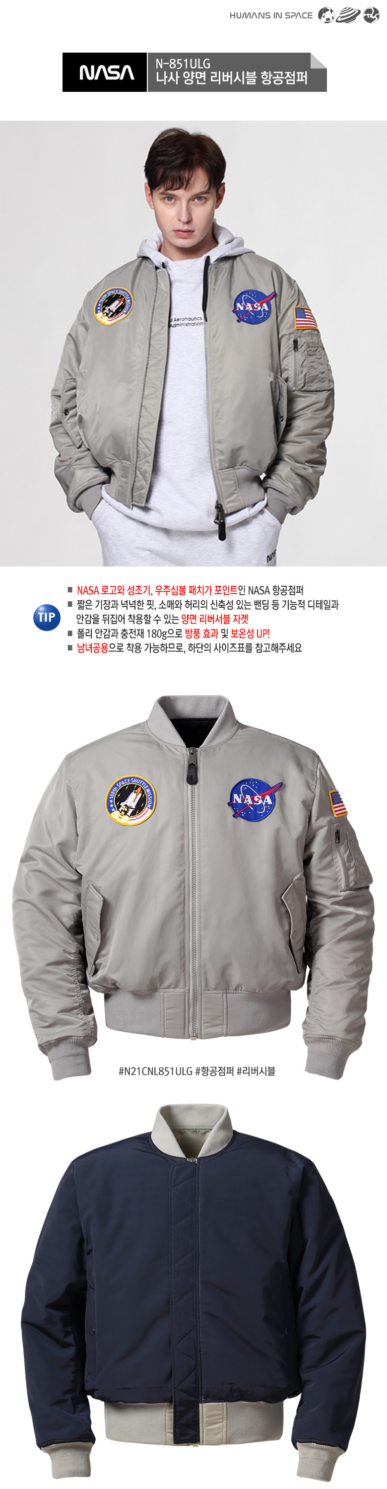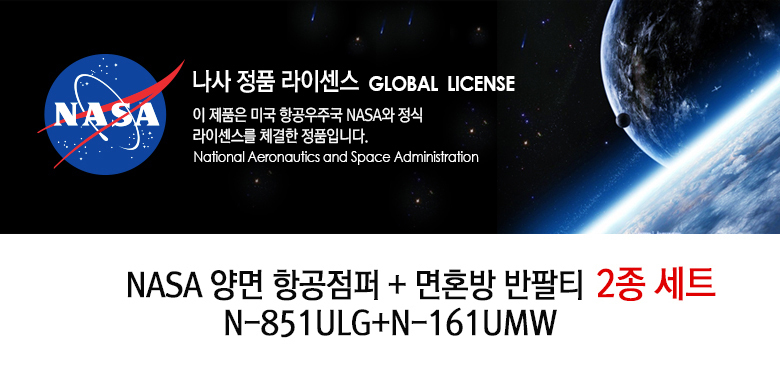 NASA 나사 남녀공용 양면 항공점퍼 블루종 자켓+반팔티 2종 세트