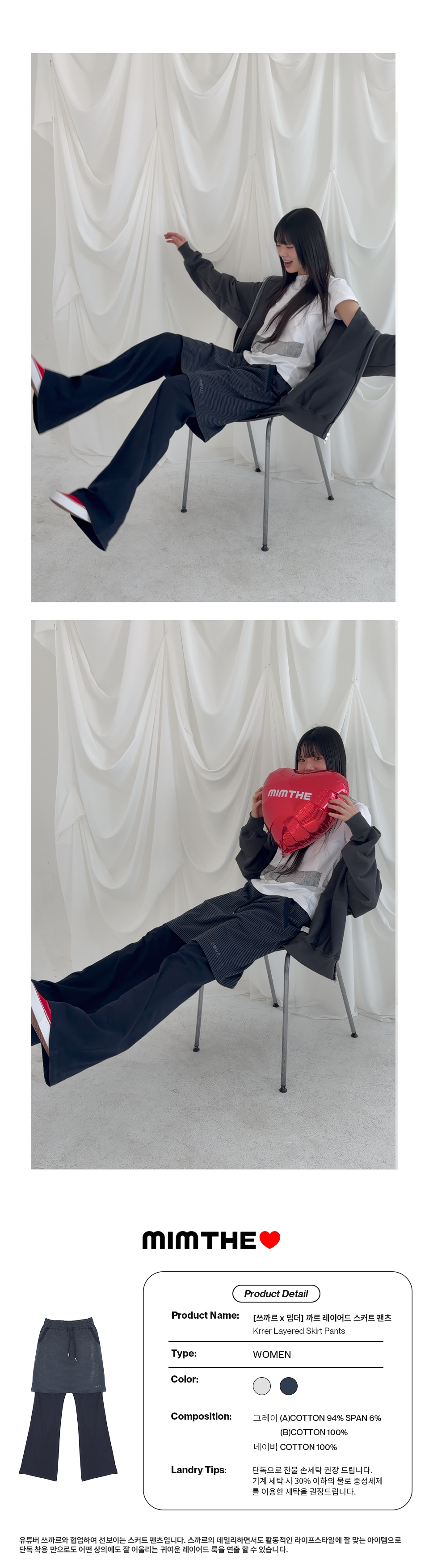 [쓰까르 X 밈더] 까르 레이어드 스커트 팬츠_그레이