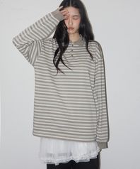 단가라 멀티 스트라이프 오버핏 롱슬리브 카라 티셔츠 _2COLOR