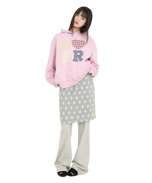 [쓰까르 X 밈더] SKRR 패치워크 까르 후드티_핑크
