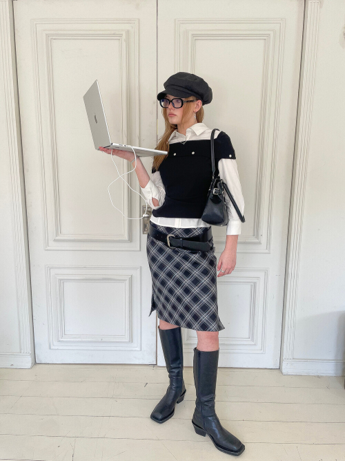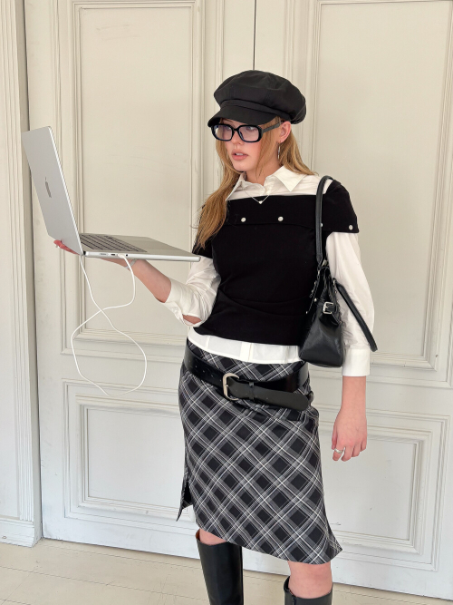 Check Midi Skirt (black/white)