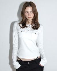 포켓 헨리넥 리브드 롱슬리브 화이트