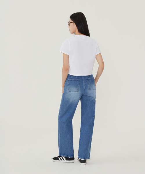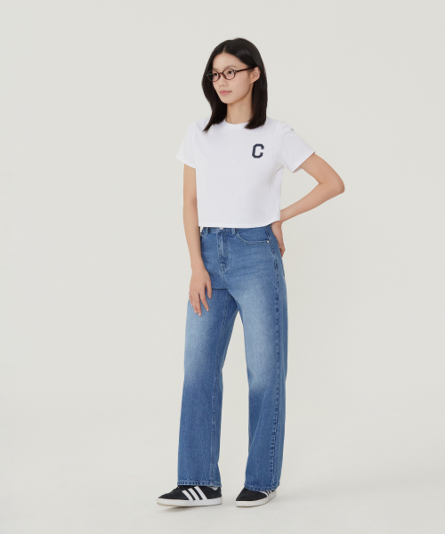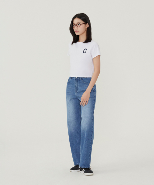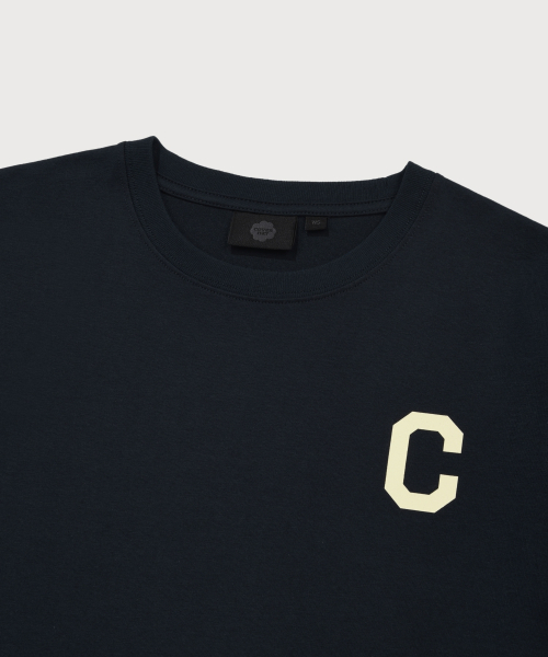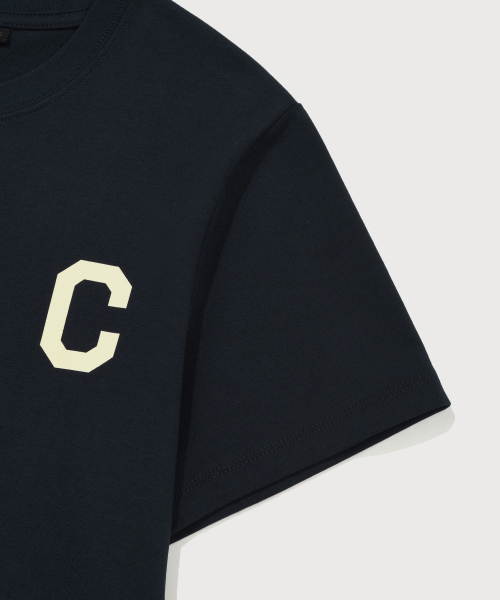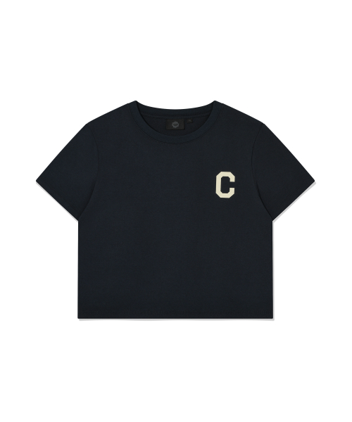 우먼 크롭 쿨코튼 C로고 티셔츠 네이비