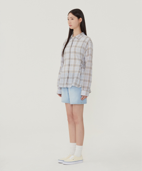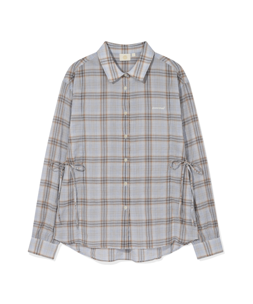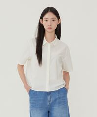 우먼 오버핏 시어 셔링 블라우스 아이보리