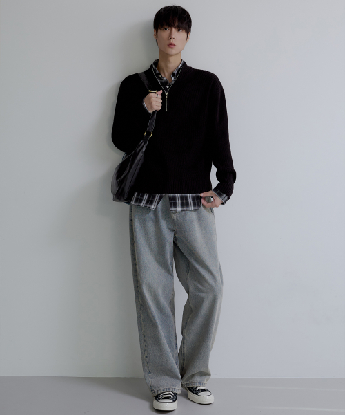 너드 데일리 루즈핏 체크 셔츠 [블랙]