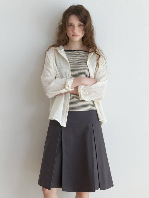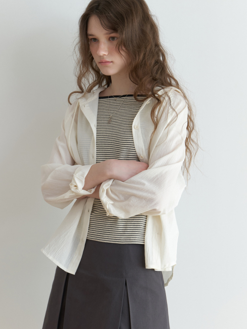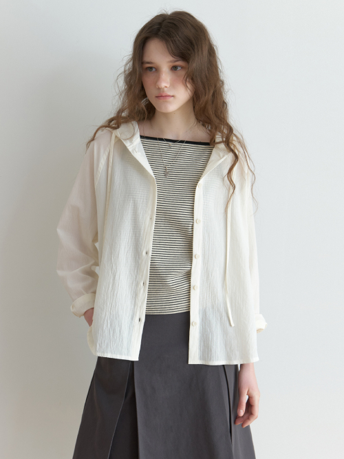 은미하게 보이는 얇은 스트라이프 패턴으로 내추럴한 무드를 가득 담아낸 SS 시즌 후드 셔츠입니다. 더미튼의 베스트셀러 Paper cotton blouse에서 디벨롭된 디자인으로 조금 더 맑고 유연한 무드로 풀어냈습니다. 얇고 가벼운 두께감의 산뜻한 코튼 소재와 넉넉한 후드 사이즈, 느긋하게 느껴지는 래글런 슬리브의 조화는 자연스럽게 흐르는 편안한 실루엣을 표현해 내었습니다. 무언가 담백한 귀여움을 지닌 후드 디자인은 슬리브리스와도 어울림이 좋으며, 니트, 베스트, 아우터 어디에든 나만의 재미있는 레이어드에 함께 하고 싶은 마음이 듭니다.