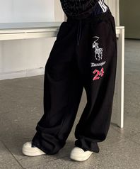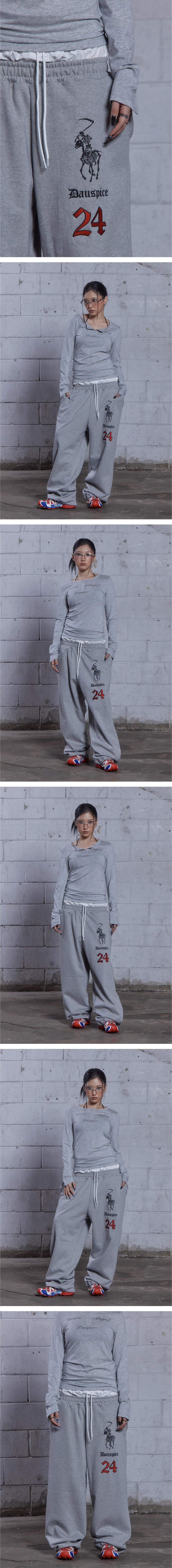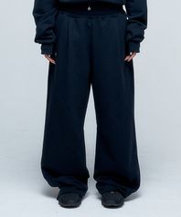 와이드한 실루엣의 스웻팬츠로, 더블 웨이스트 레이어링 설계를 통해 베기 스타일 연출이 가능하며 사이드 라인 테이프 디테일을 더한 디자인.
