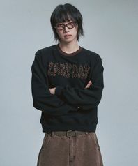 레오파드 아플리케 스웨트셔츠 - 블랙