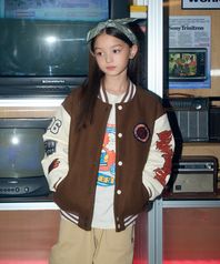 KIDS BB PATCHES VARSITY JACKET - BROWN