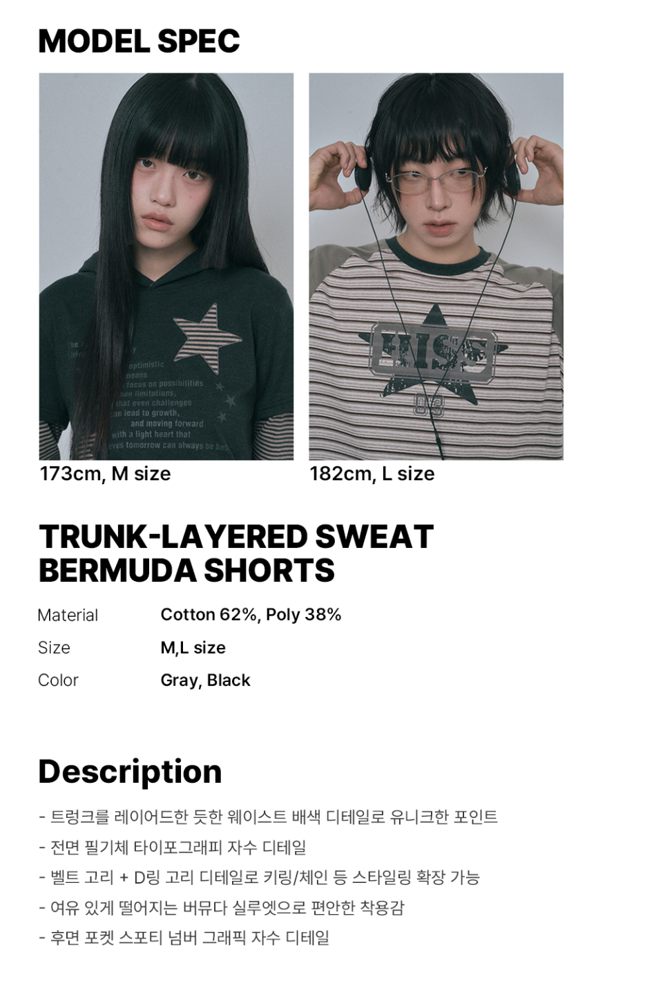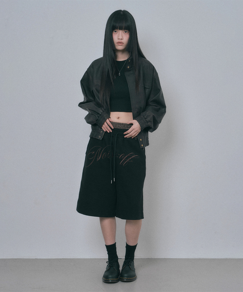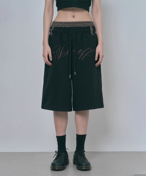 트렁크 레이어드 스웨트 버뮤다 팬츠 - 블랙