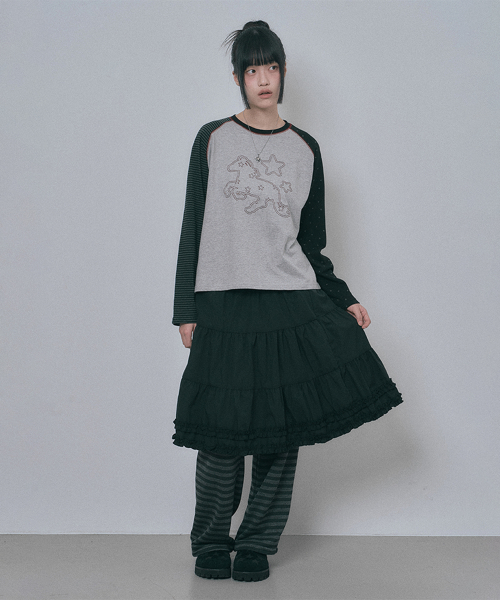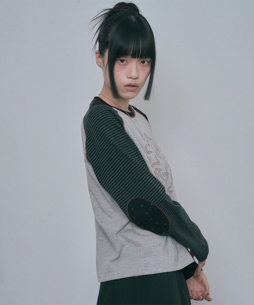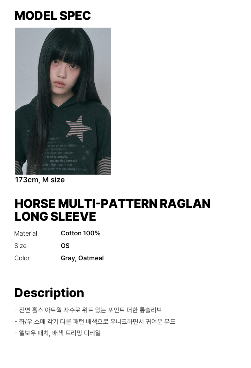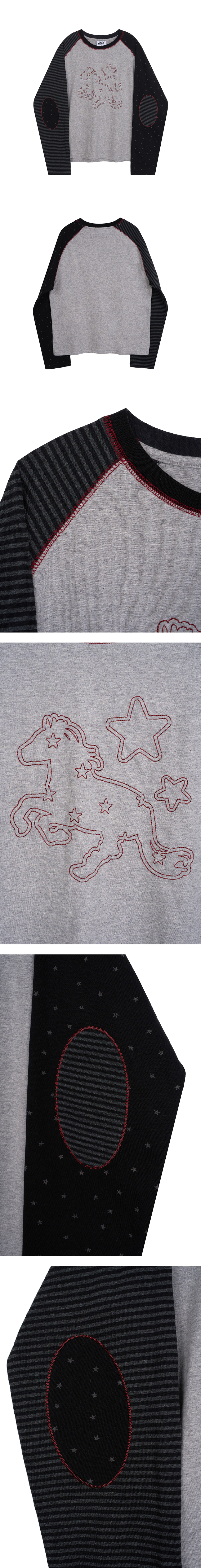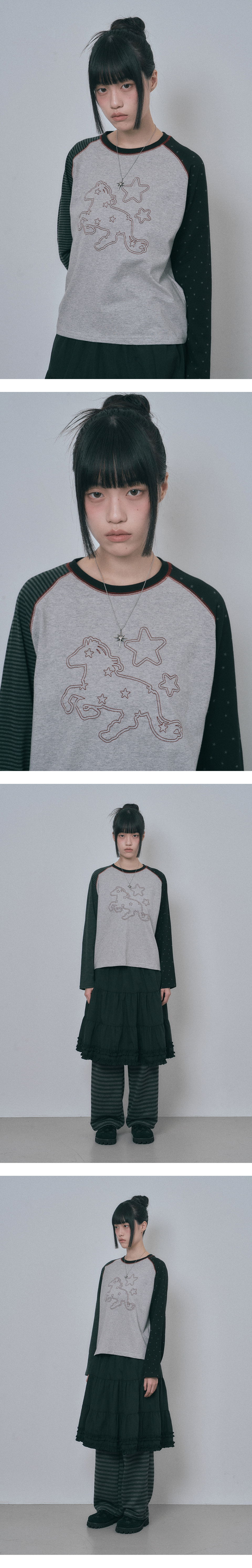 홀스 멀티 패턴 래글런 롱슬리브 - 그레이