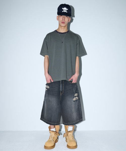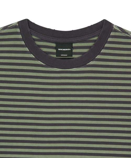 [KOIN SEOUL] DAMAGED STRIPED T-SHIRT (CHARCOAL)