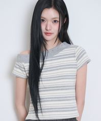 원숄더 스터드 스트라이프 탑 그레이 아이보리