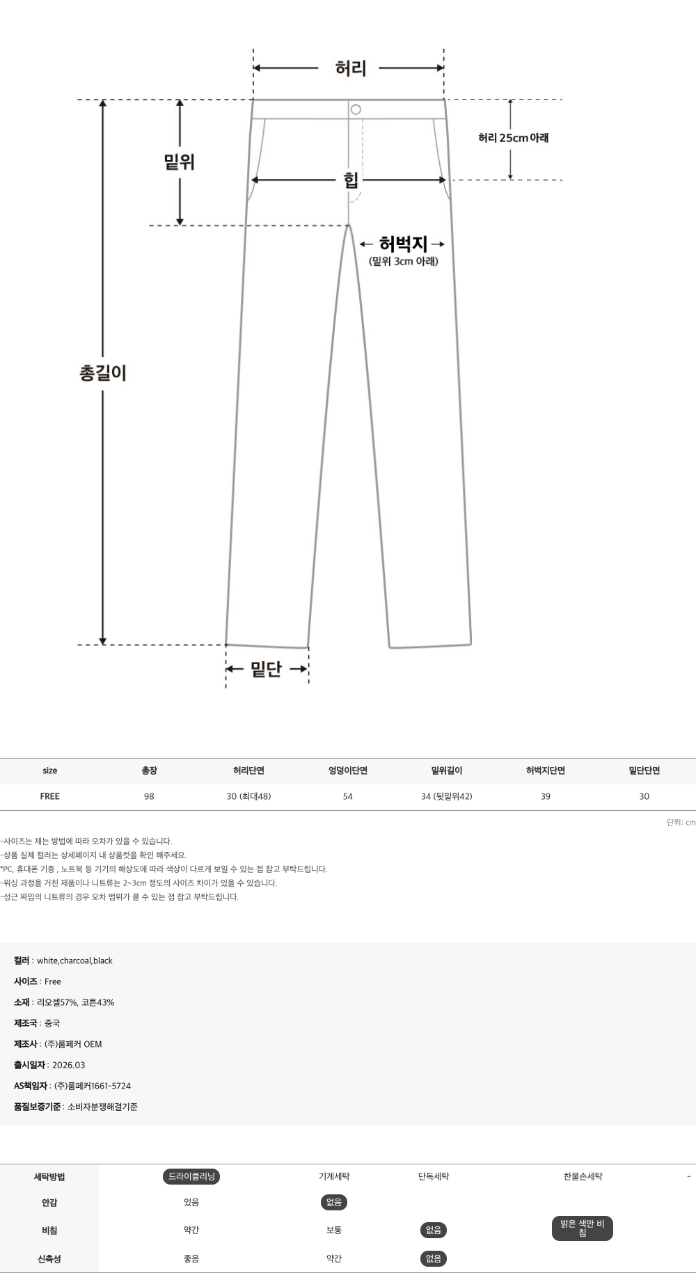 - 리오셀57%, 코튼43%