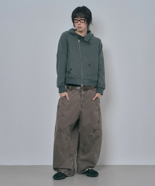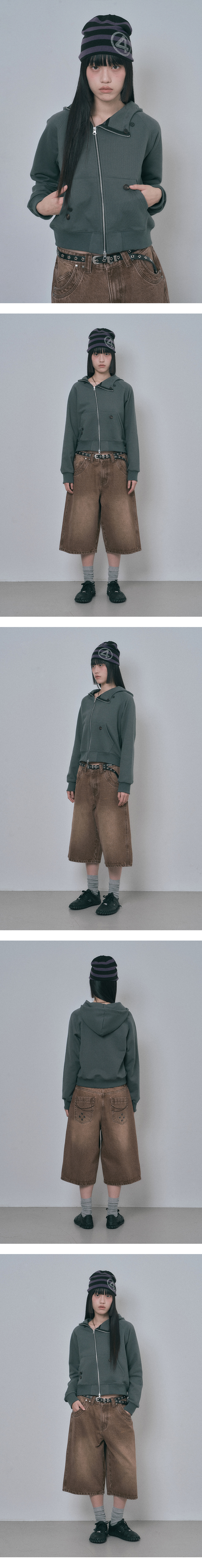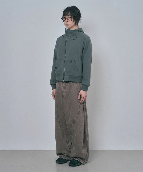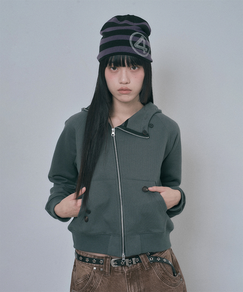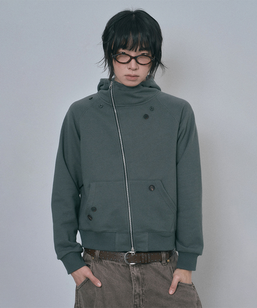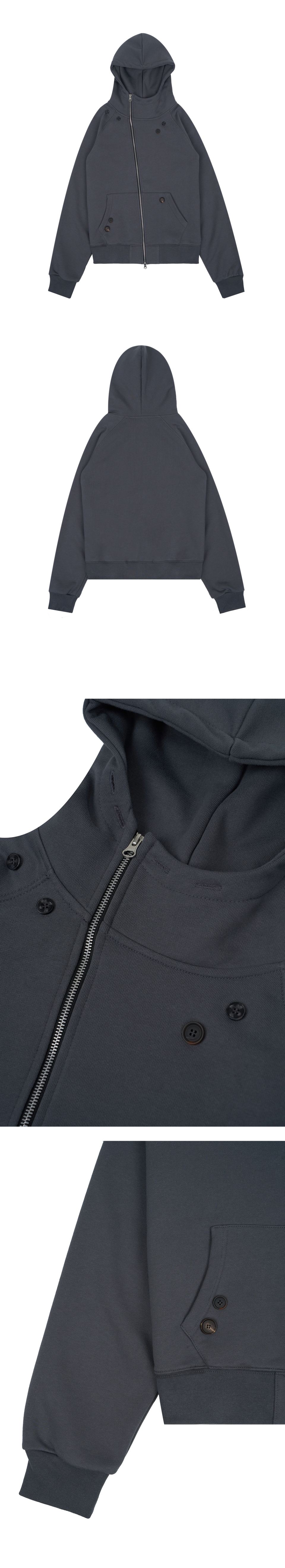 다이애그널 버튼 후드집업 - 다크그레이