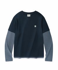 (우먼) 레이어드 롱슬리브 티셔츠_네이비