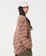 아이비 멀티 스트라이프 라운드 롱슬리브 티셔츠 브라운