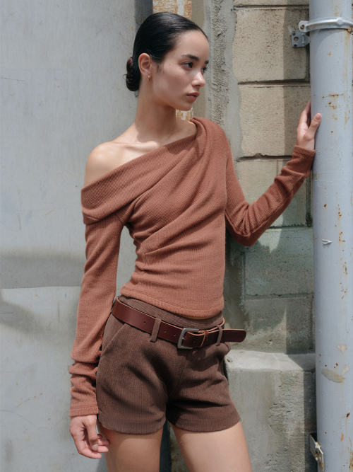 VIA SHIRRING TOP_TAN