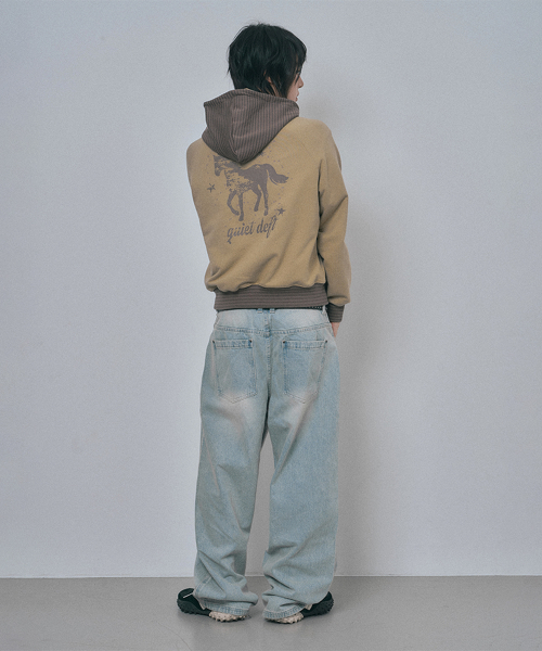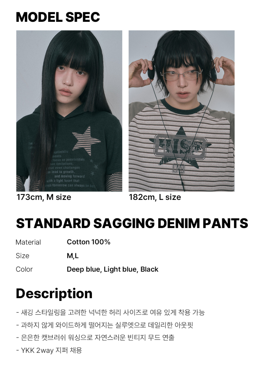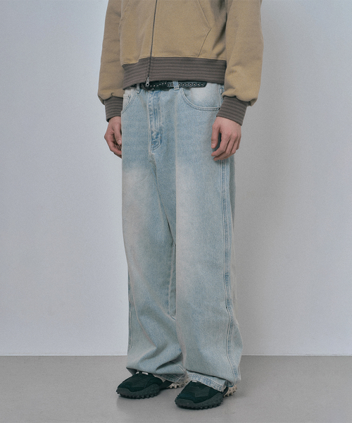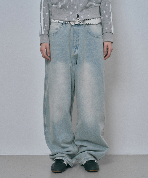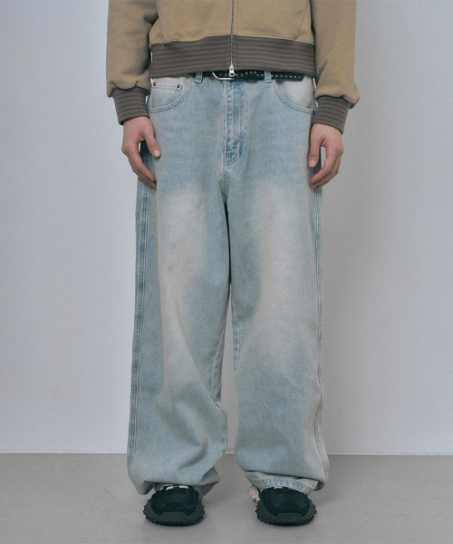 새깅 와이드 데님팬츠 - 라이트블루