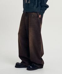 웨이브 벌룬 와이드 데님 팬츠 - 다크브라운