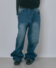 새깅 와이드 데님팬츠 - 딥블루