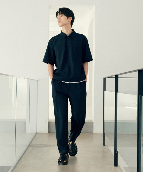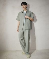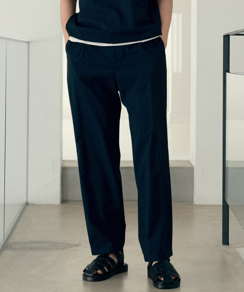 [에어쿨]원 턱 릴랙스 핏 시어서커 에어홀 풀 밴딩 팬츠
