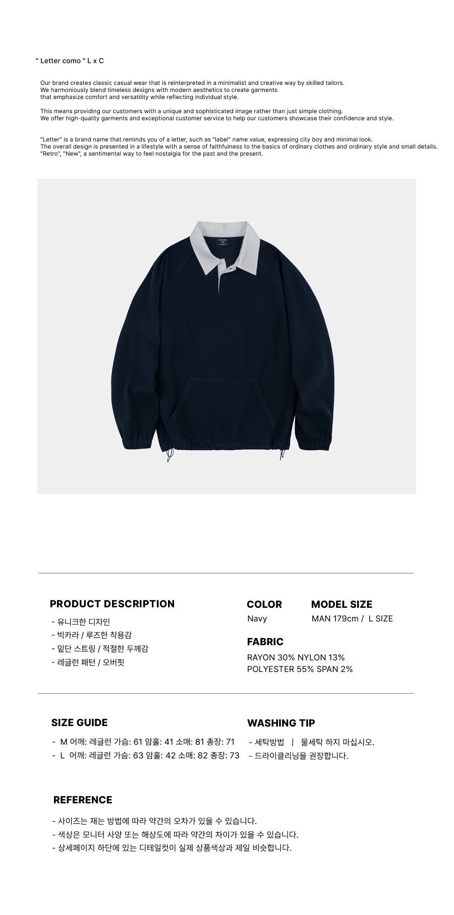 프리 오버 럭비 맨투맨 네이비