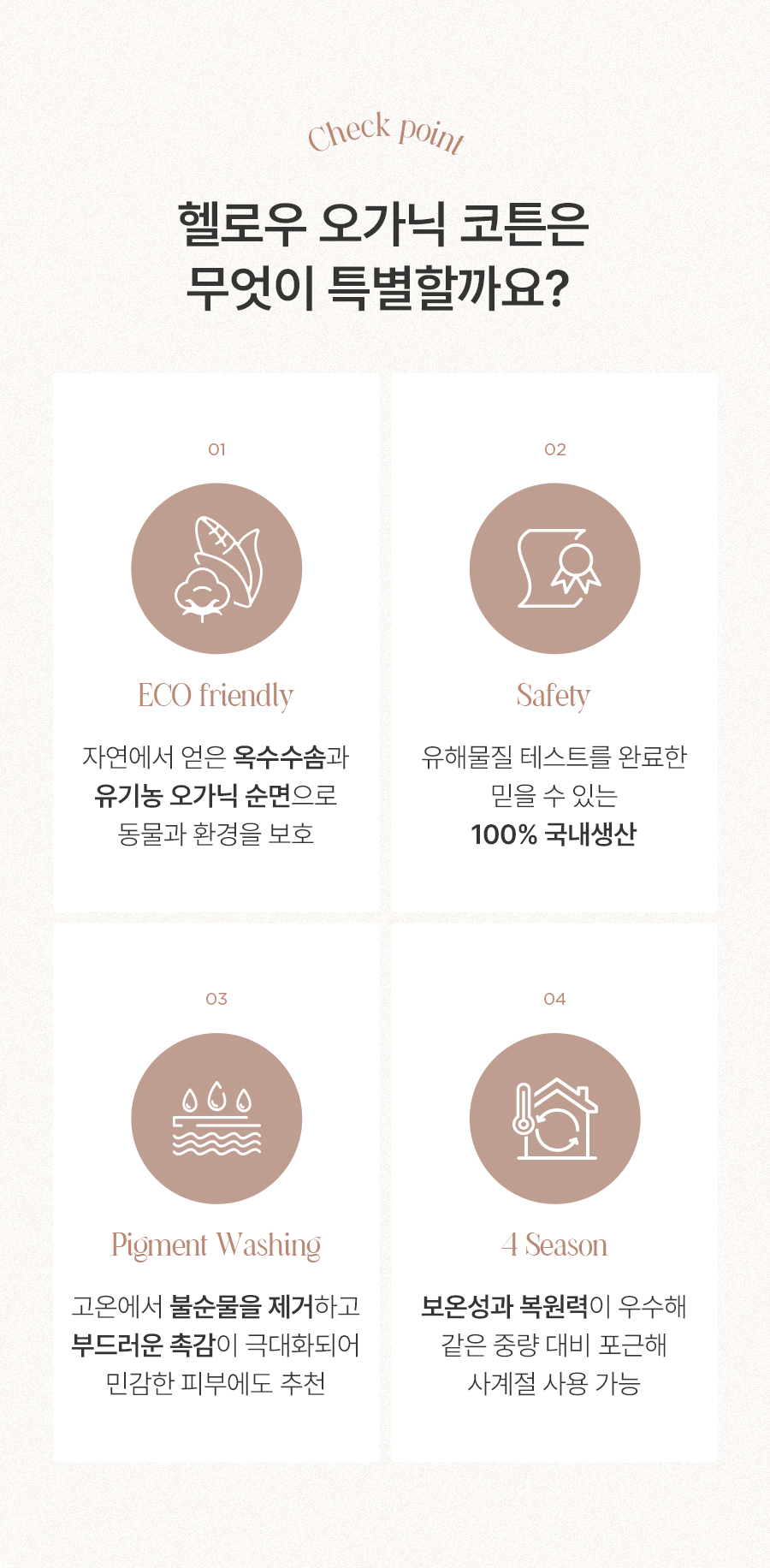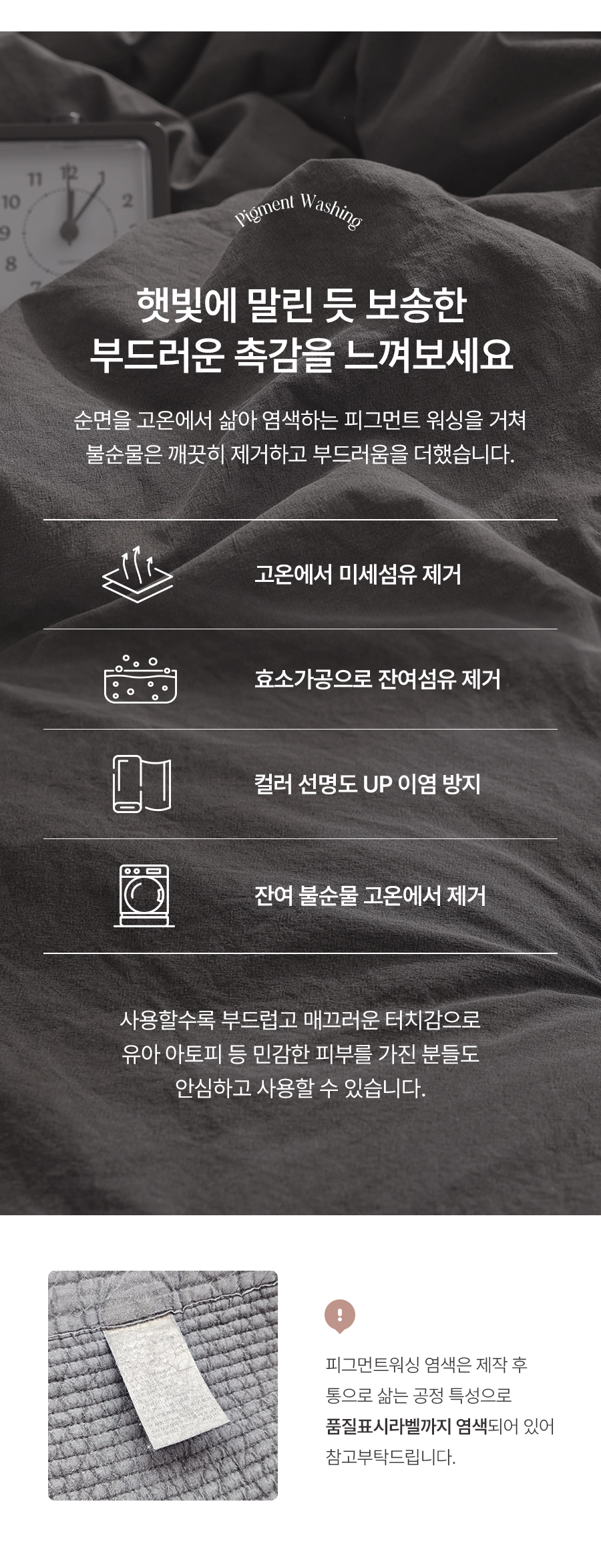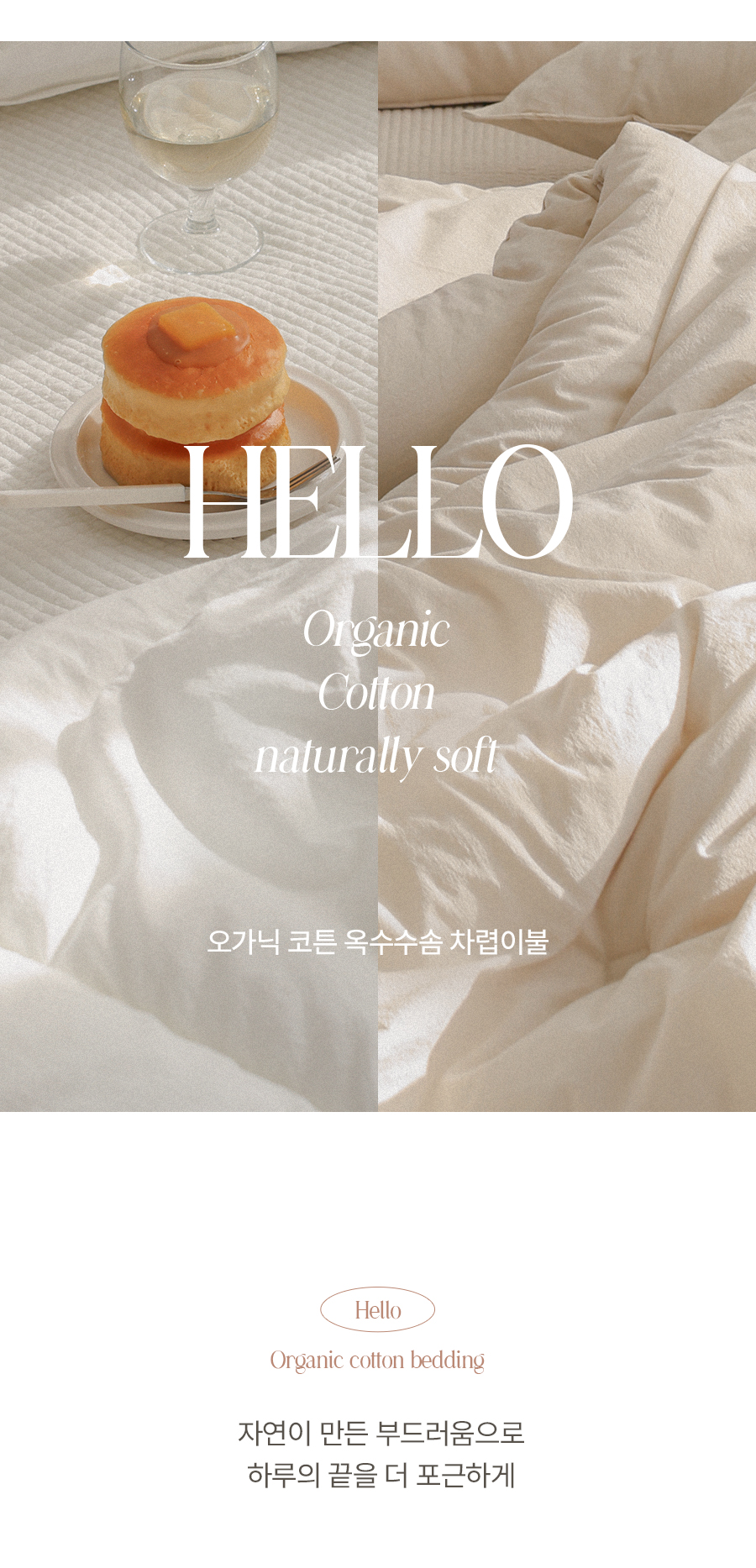 헬로우 4COLOR 오가닉 순면60수 피그먼트워싱 옥수수솜 차렵이불&베개세트(SS)(Q/K)