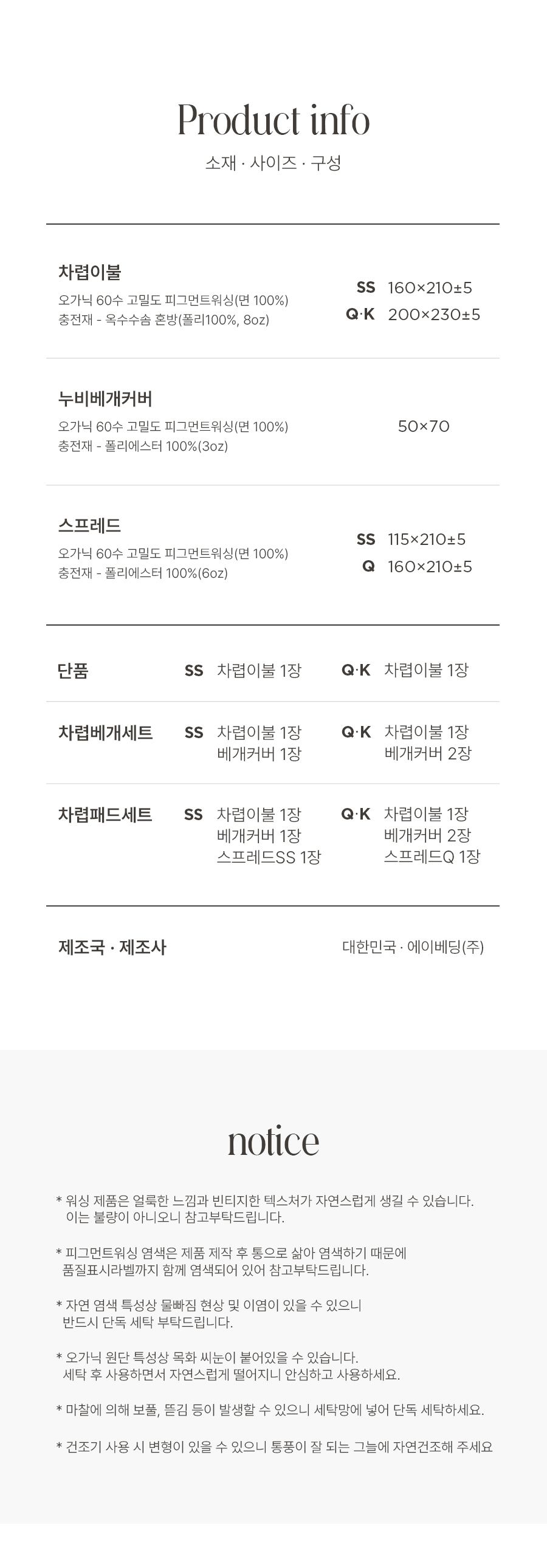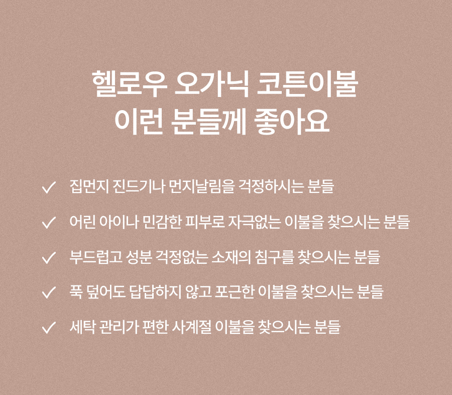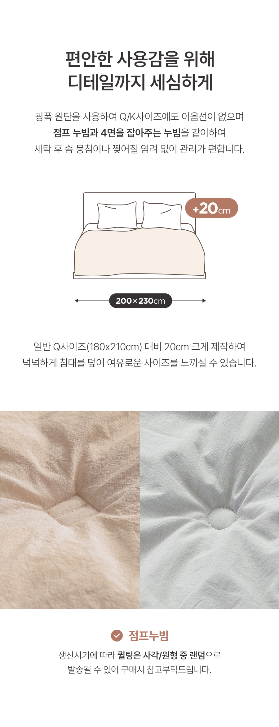 헬로우 4COLOR 오가닉 순면60수 피그먼트워싱 옥수수솜 차렵이불&베개세트(SS)(Q/K)