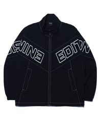 빅 워딩 배색 하이넥 스트레치 집업 LQ7JU421_BLACK