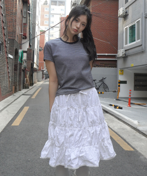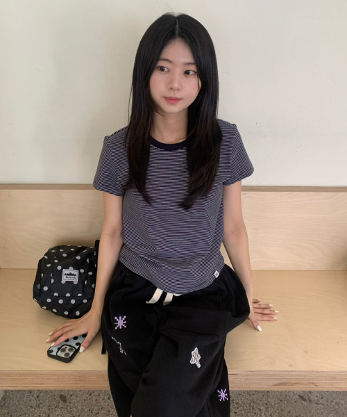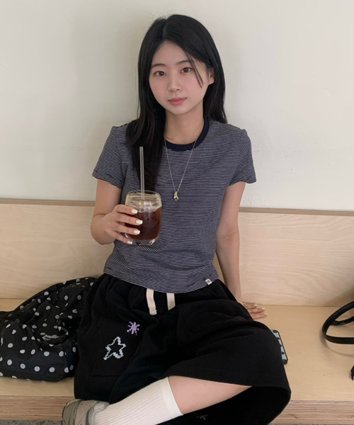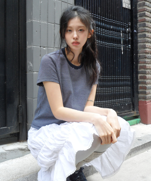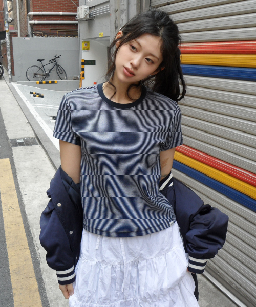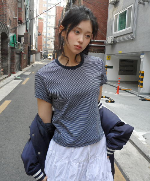 (우먼) 미니 반소매 티셔츠-다크 네이비
