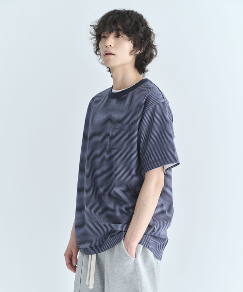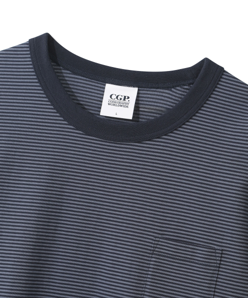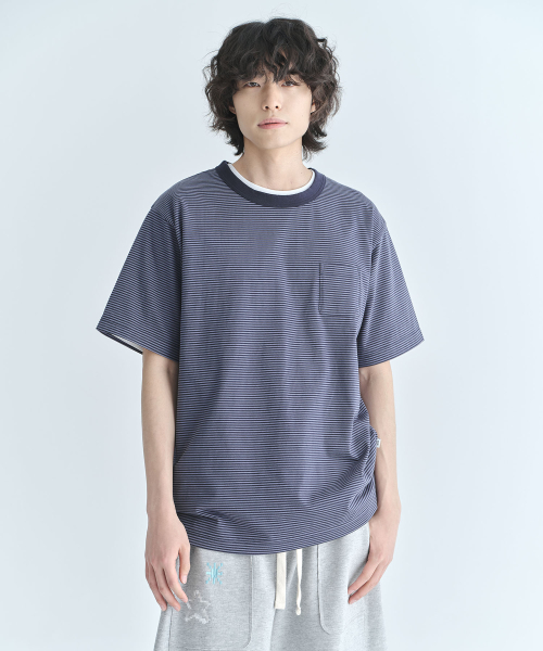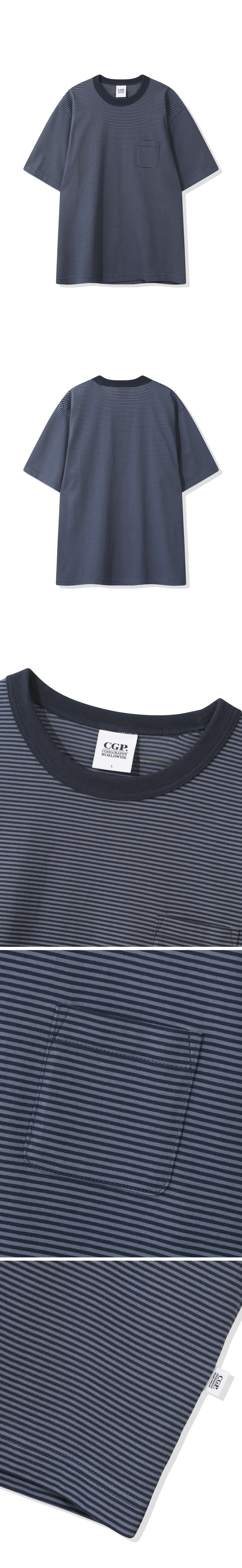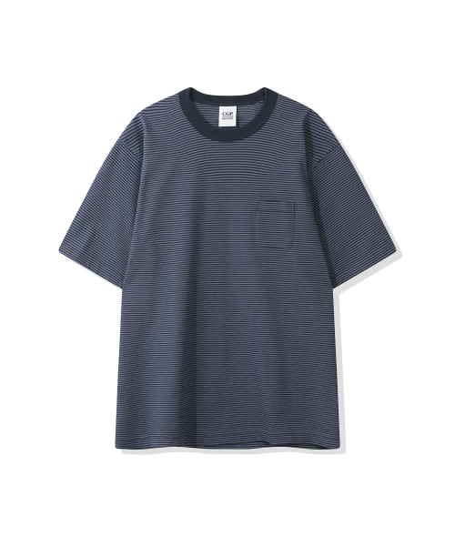 스트라이프 포켓 반소매 티셔츠-다크 네이비
