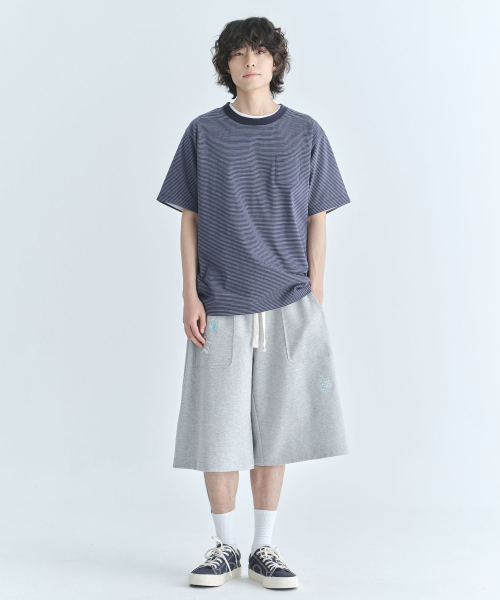 핀스트라이프 미니 포켓 반소매 티셔츠-멜란지 그레이