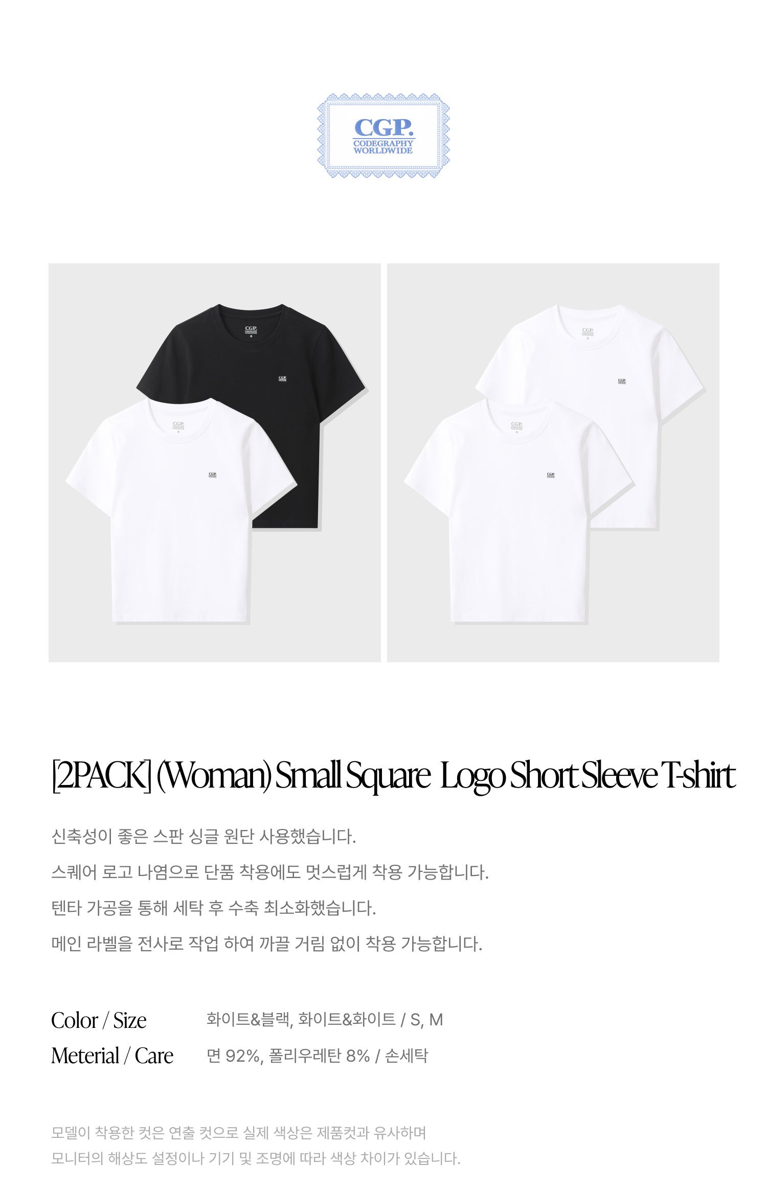[2PACK] (우먼) 스몰 스퀘어 로고 반소매 티셔츠-화이트