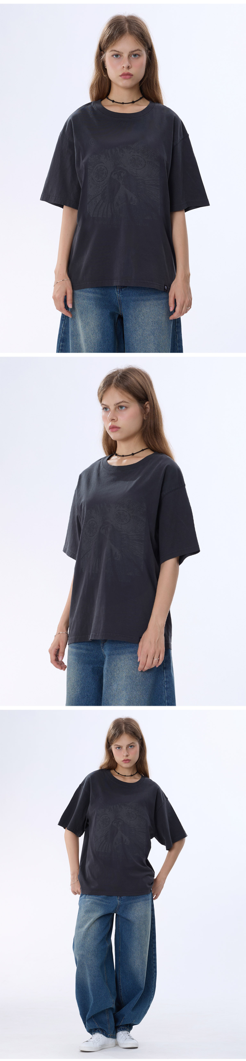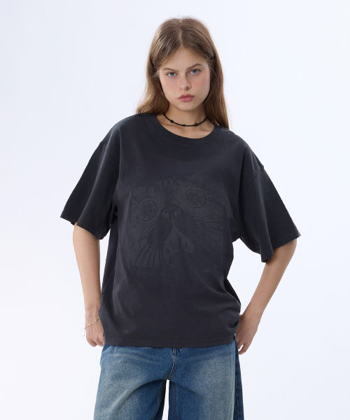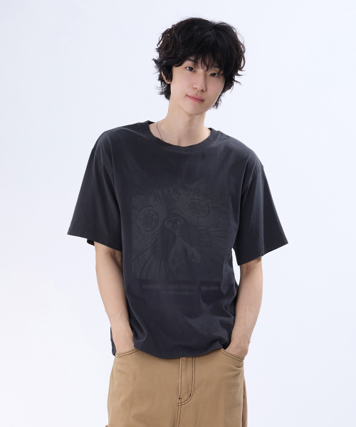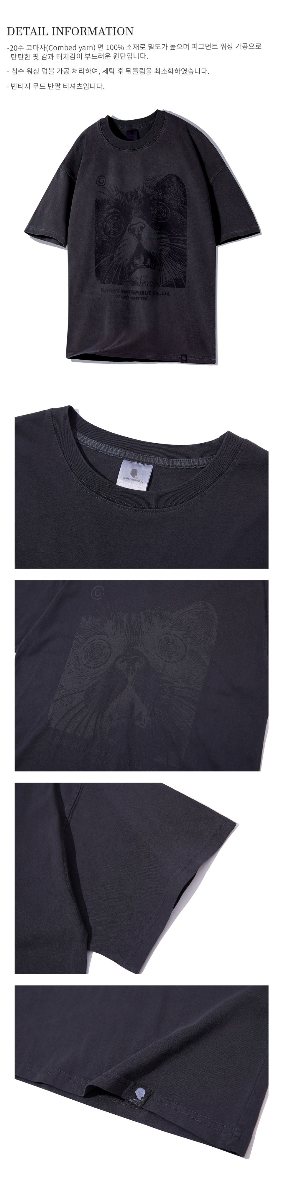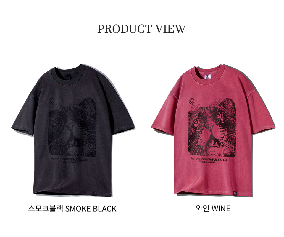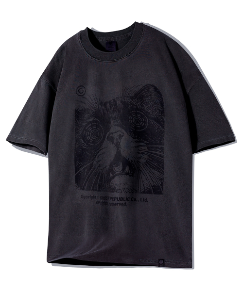 캣 아트워크 피그먼트 반팔티 GT-383_스모크블랙
