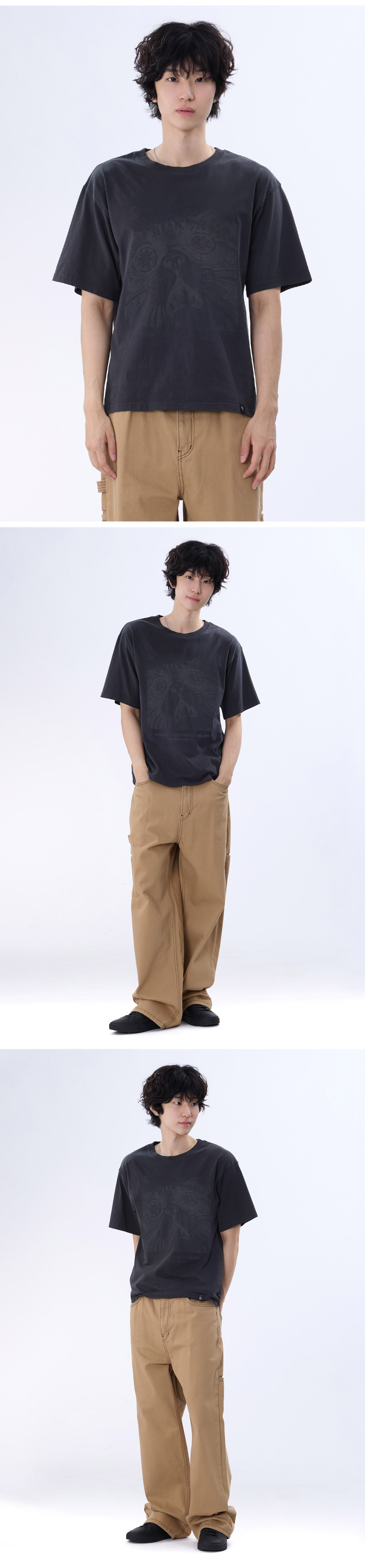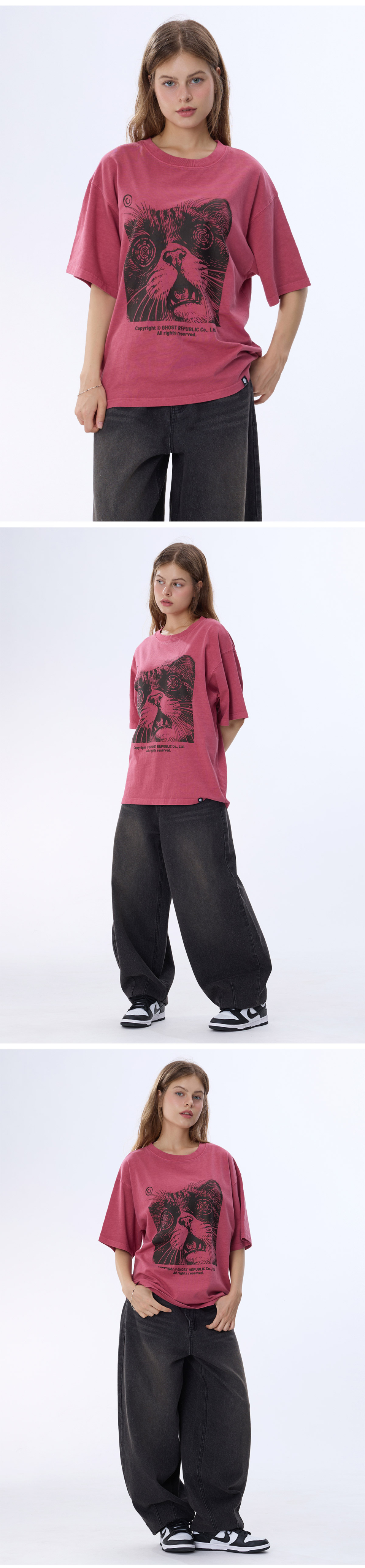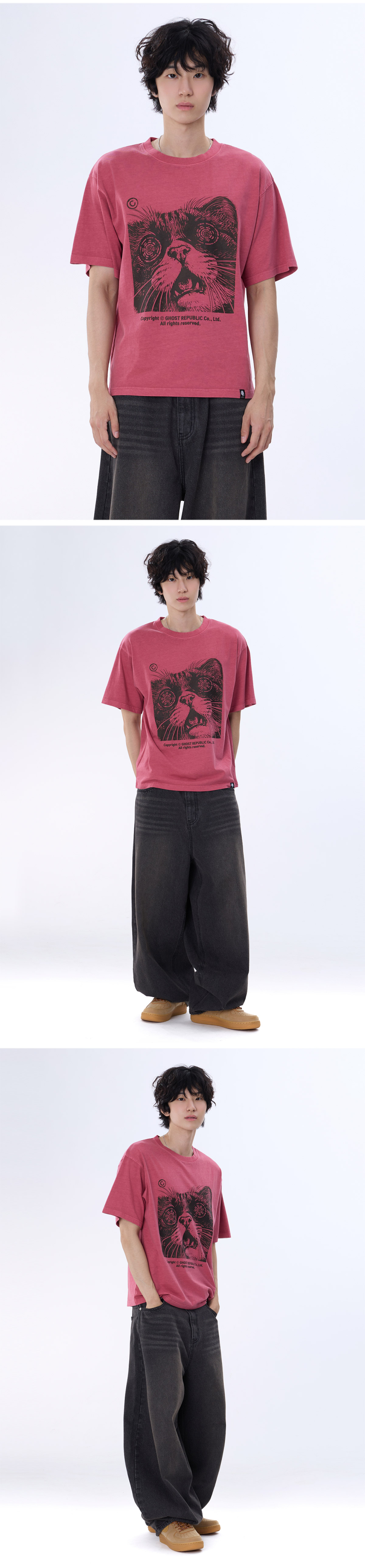 캣 아트워크 피그먼트 반팔티 GT-383_스모크블랙