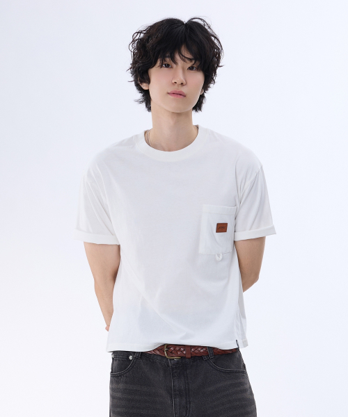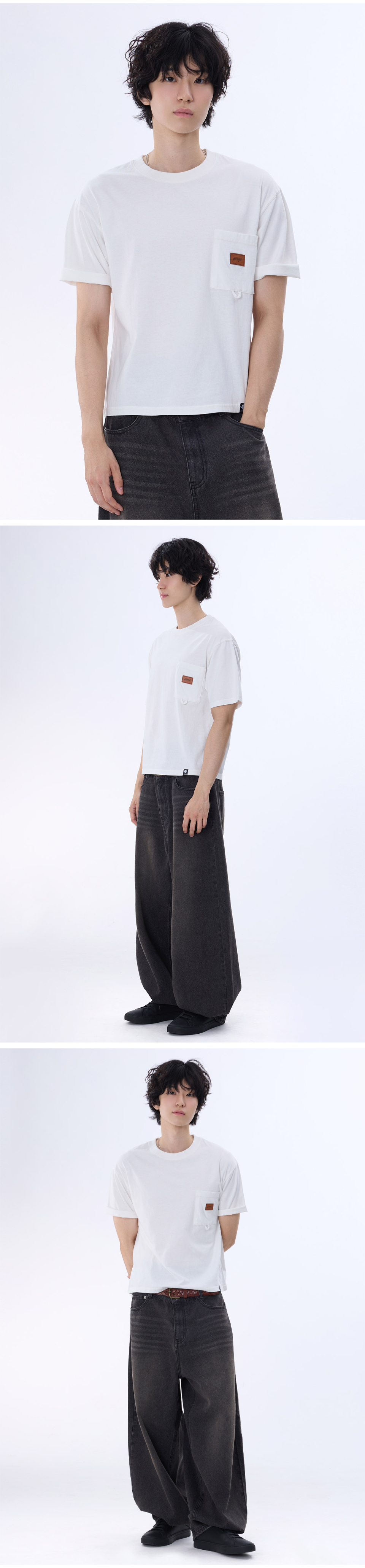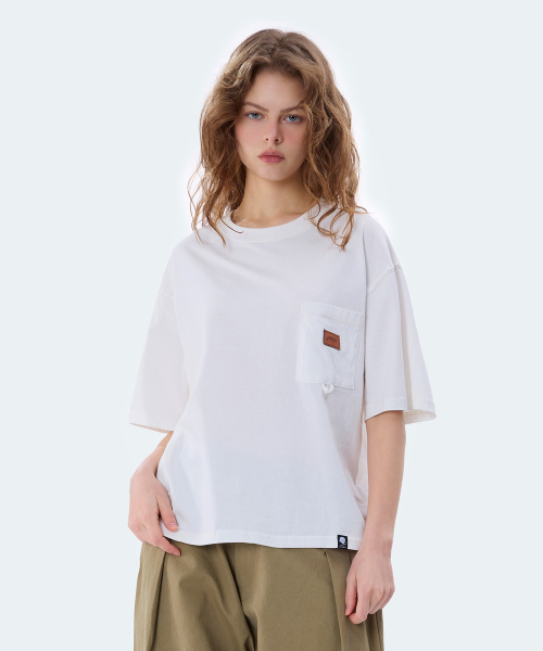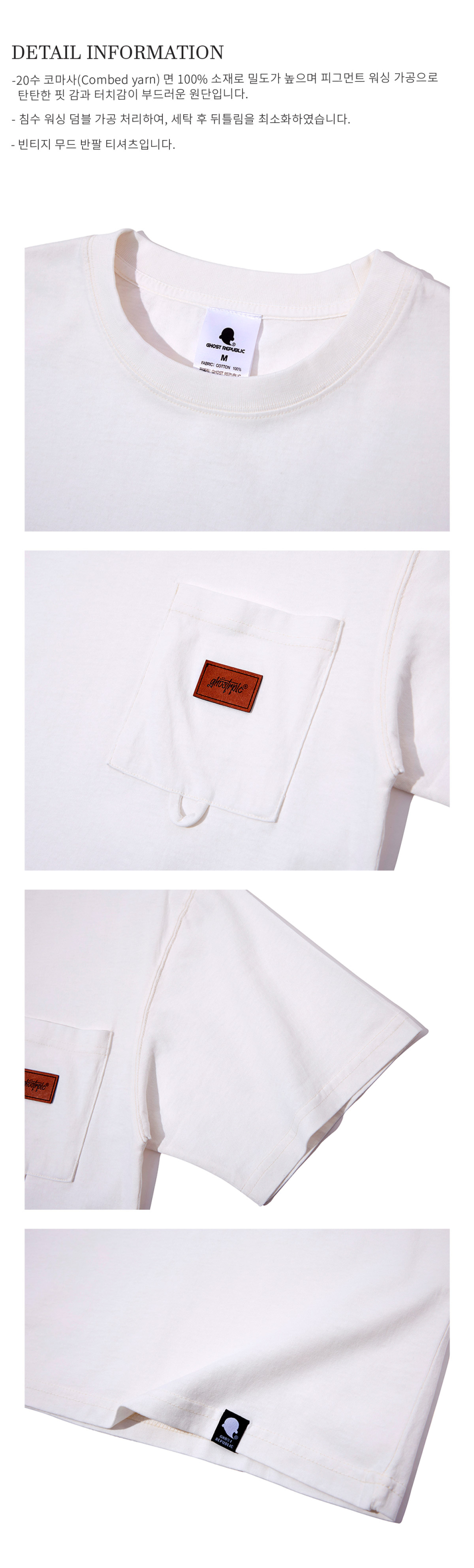 레더 패치 포켓 피그먼트 크롭 반팔티 GT-380_아이보리
