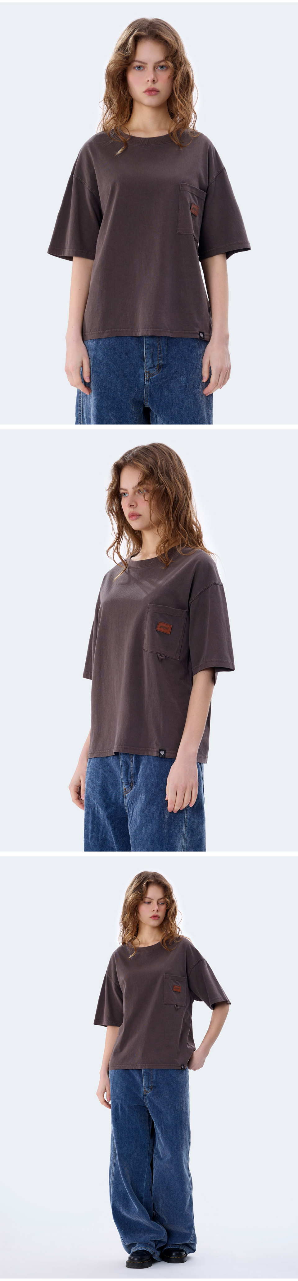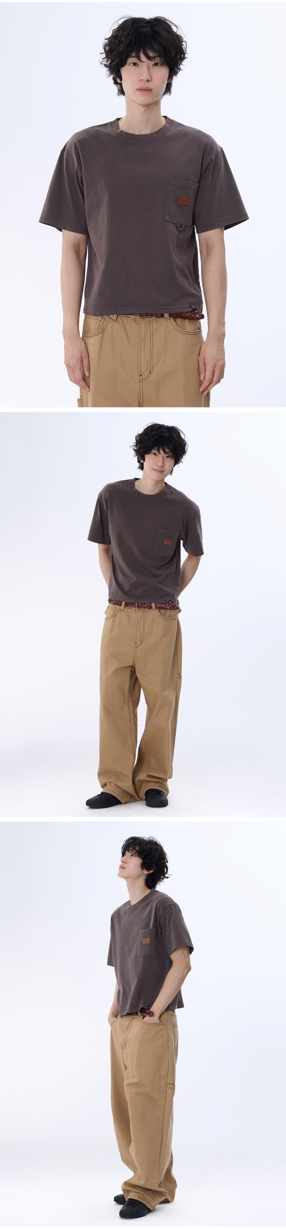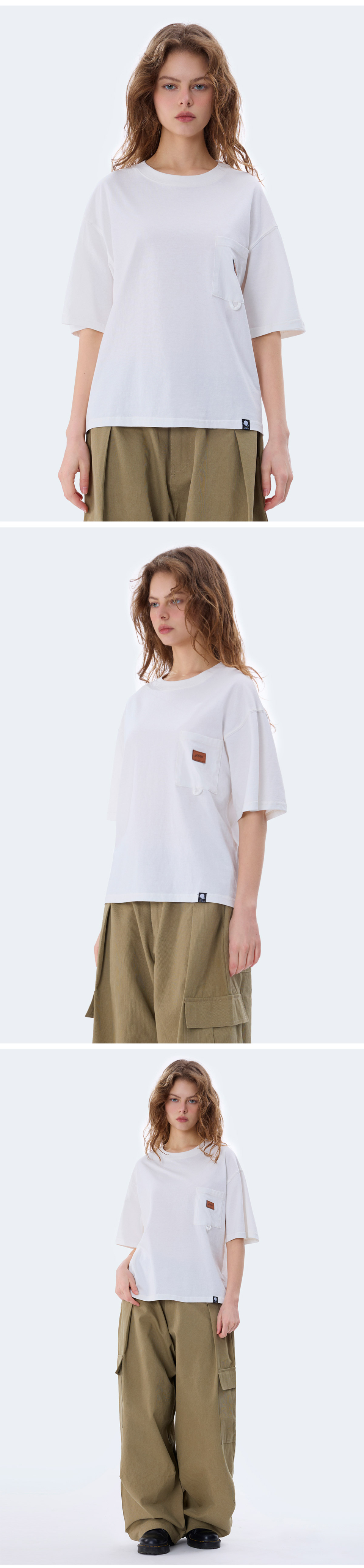 레더 패치 포켓 피그먼트 크롭 반팔티 GT-380_아이보리