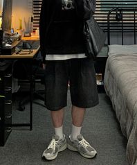 [DRAW FIT X DAILY ROOM] 로버스트 버뮤다 와이드 데님 팬츠 [BLACK]