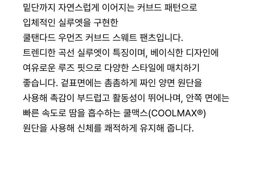 [쿨탠다드] 우먼즈 커브드 스웨트 팬츠 (2 colors)