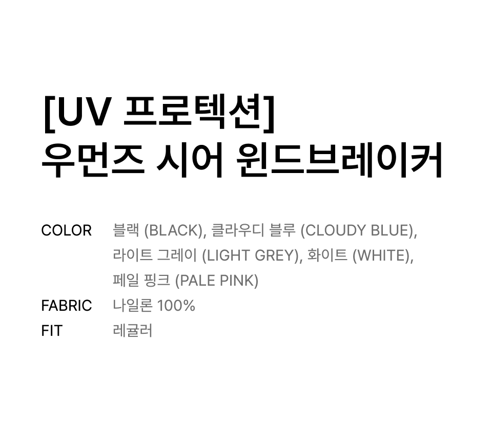 [UV 프로텍션] 우먼즈 시어 윈드브레이커 (5 colors)