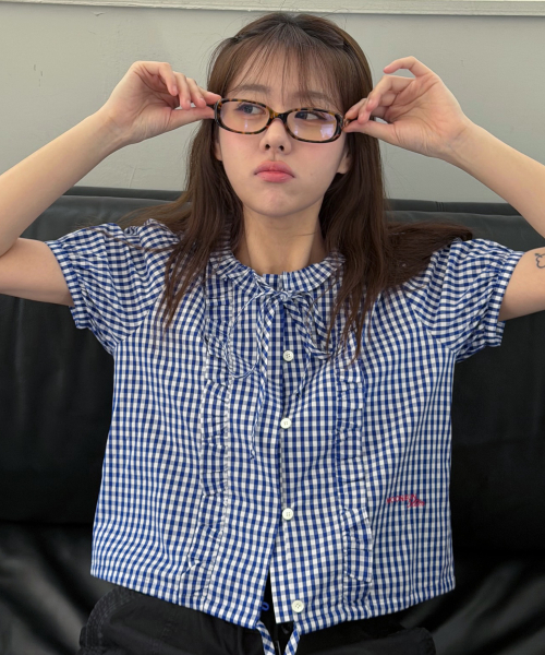 ESSENTIAL_UNISEX Argyle Hole Sleeve T-shirt [Sky Blue]