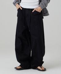 워시드 와이드 벌룬 스트링 코튼팬츠 블랙