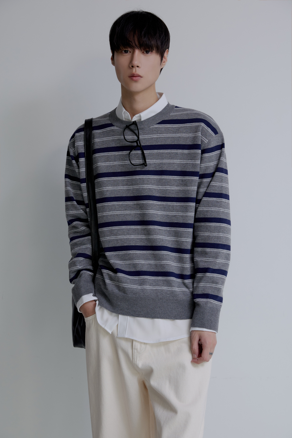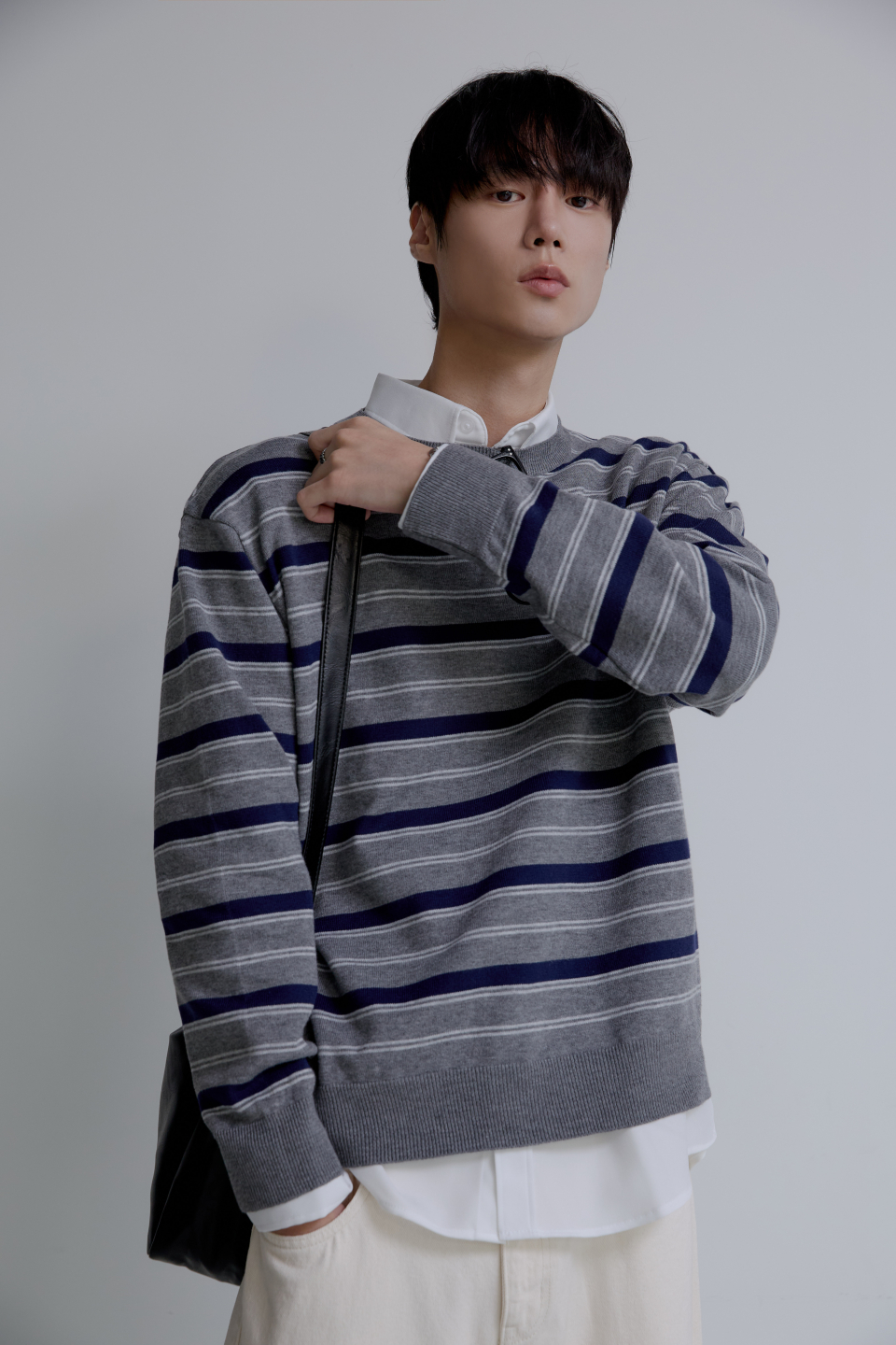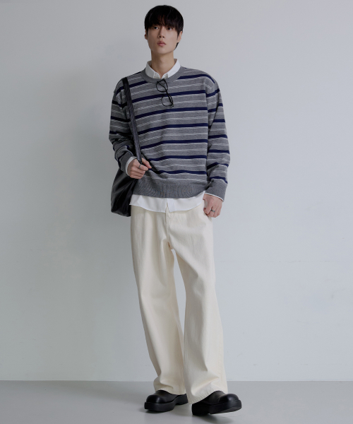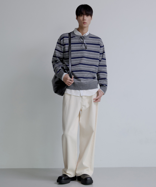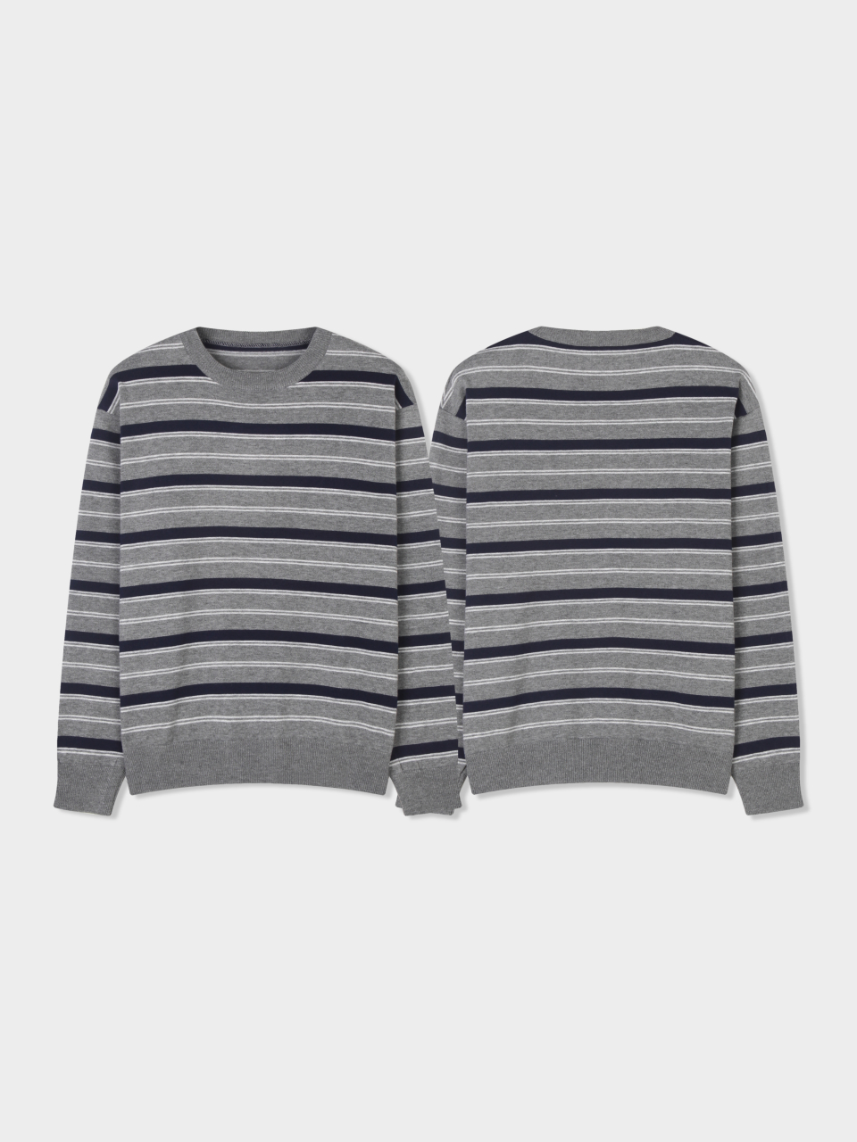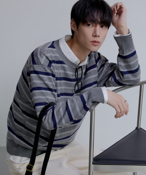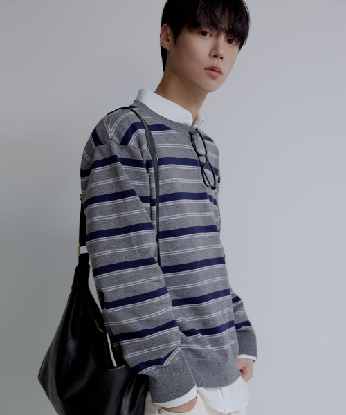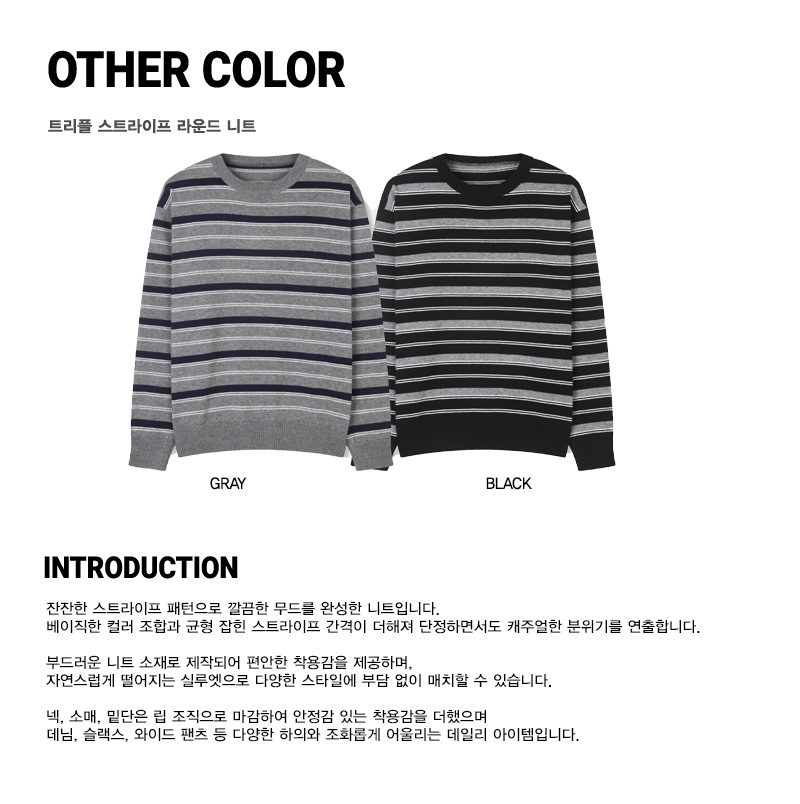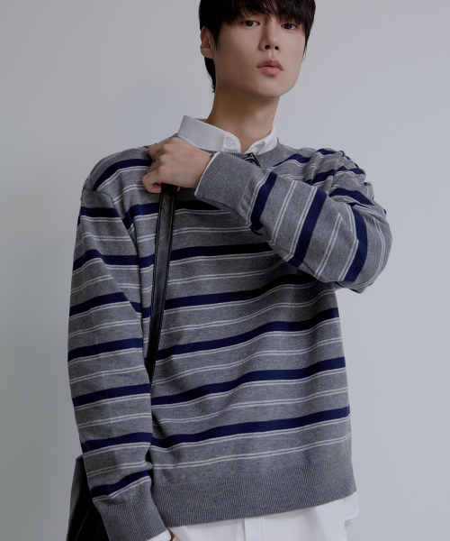 트리플 스트라이프 세미 크롭 니트 [그레이]