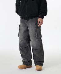 데님 파라슈트 카고 팬츠 [워시드 블랙]
